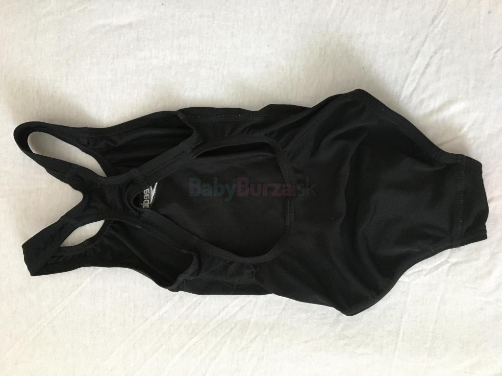 Celé športové plavky pre dievčatko, čierne, so zaujímavými prekríženými ramienkami, veľmi zachovalé.Veľ. 116cm.